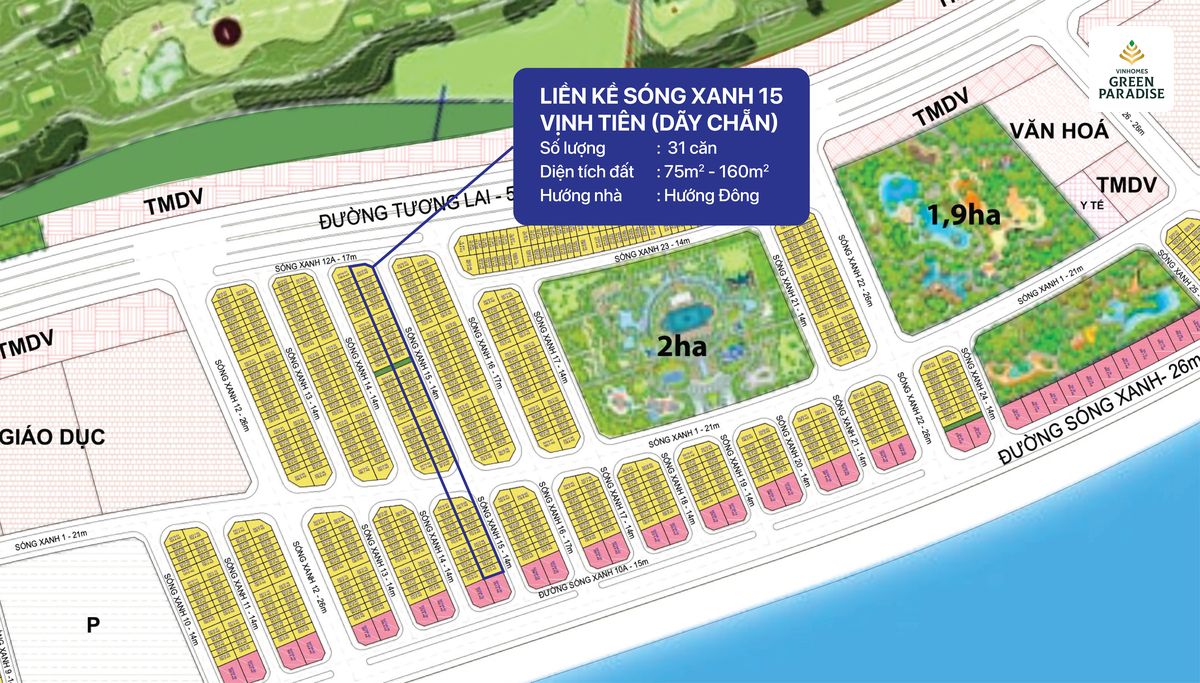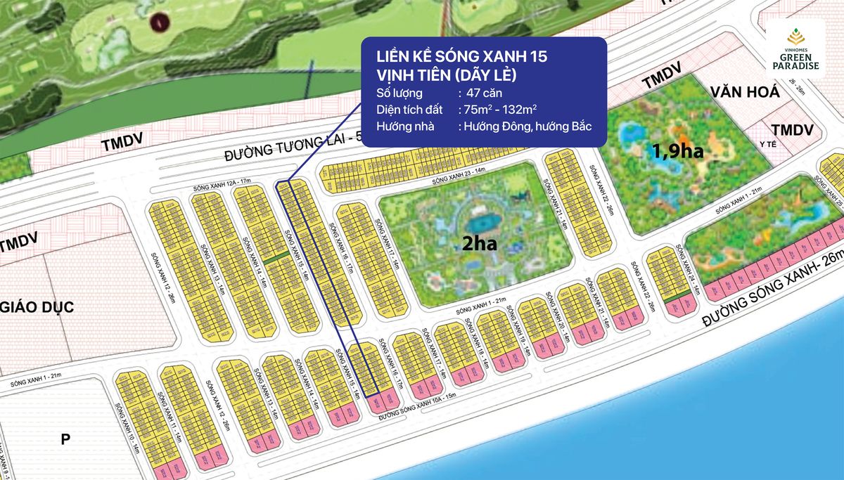 Vị trí dãy liền kề Sóng Xanh 15 dãy lẻ phân khu Vịnh Tiên Vinhome Green Paradise